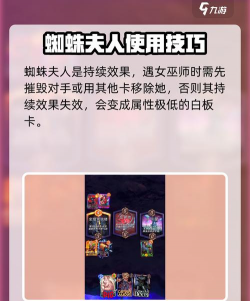 蜘蛛夫人的效果是持续效果,所以在遇到女巫师的时候要想办法先把对手摧毁或者用别的卡把她移走,不然持续效果失效就成了一个属性极低的白板了。
