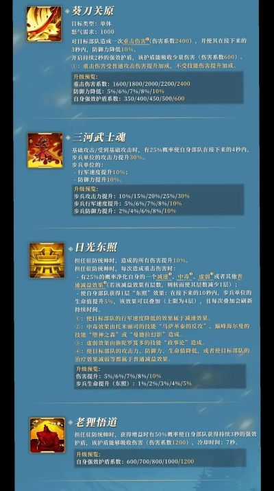强力的步兵坦克英雄,也是前两个赛季中最好用的步兵英雄之一,有条件必拿的。玩家可以通过活动幸运转盘来抽取这个英雄。怒气技“神佑剑幕”可以在4秒内提升物理攻击,同时获得护盾,护盾能在4秒内吸收一定的伤害。被动则可以提升所率领部队容量上限,打野的物理伤害。提升所在部队的反击伤害与步兵生命值。