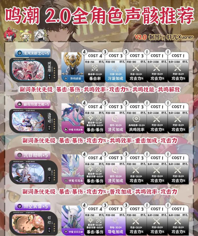 2、副词条:暴击伤害>百分比攻击>共鸣解放增伤>共鸣效率。