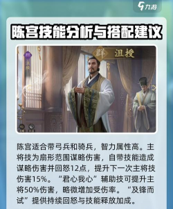 鲁肃在阵容中就是辅助多面手,主要是强化全体队员的作战能力。会通过弓兵专精,还有远程打击类的技能,放大兵种的优势,同时可以给团队提供攻击加成,还有防御加成,提升整体坦度和输出的上限。随着鲁肃自身智能的属性提升,自然就会间接的带动周瑜的技能收益,还有孙权的技能收益。从技能的选择方面来看,军医技能就可以带来稳定的回血比例,进一步的踏实队伍的续航能力。这套阵容的核心逻辑是三者形成的战术闭环,周瑜主要是靠高频灼烧,造成持续性的伤害,可以慢慢的磨掉敌方的血量。孙权则通过技能可以持续的回血,维持队伍战线不会崩盘。