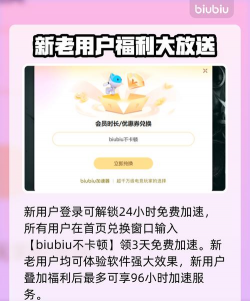 有一些玩家还没用过,就想着先试试好了。好在新人可领取24H的免费加速,玩了后才发现完全不会闪退,内心更安稳!另外新老用户输入兑换码【biubiu不卡顿】,就能额外畅享三天免费加速,让自己的加速之旅,可以延长更长时间!特别是新用户,就相当于直接白领了96H的免费加速,玩得倍加尽兴!