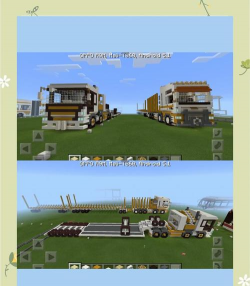 从车轮开始:用黑色混凝土制作前后轮,相隔14个方块以保持平衡;用石英台阶构建车底轮廓,并外扩石英块形成车身主体,轮子上方添加倒置石英楼梯装饰。车头部分结合蓝色混凝土、淡灰色染色玻璃和石英楼梯,中间放置熔炉作为装饰元素,两侧用物品展示框和拉杆模拟后视镜。车身使用彩色混凝土扩展,在窗口处按住潜行键延伸云杉木活板门作为门窗,并用栅栏支撑;车顶用石英台阶和玻璃封顶,确保结构稳定。