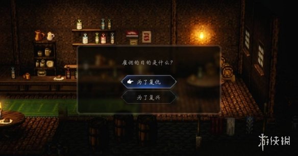 与他对话,在面对他的提问或表态时,选择关键选项【为了复仇】。