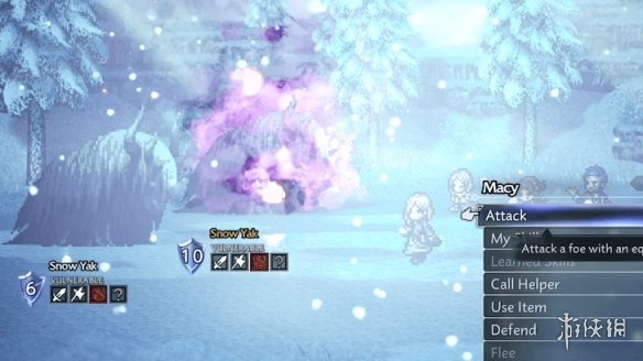 在游戏《歧路旅人0》中,雪牦牛是成对出现的高原精英敌人,每只拥有10点护盾值,弱点为剑、斧、火、光。战斗核心在于应对其沉默控制,并迅速打断它们的蓄力攻击。