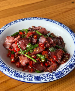 以秦椒原料制作的辣椒油、本地产的大蒜制作的蒜水、芥末、调料水等调制的凉皮,红润光滑,入口润滑筋道,味道酸辣清爽,是地道的当地名吃。