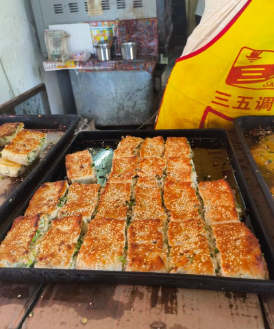 火烧粑是潜江的传统民间小吃,是一种面食,刚出炉的火烧粑外脆内软,香味四溢,撒上的芝麻更添风味。