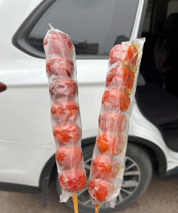 在宋朝年间便开始了古式的做法,《燕京岁时记》记载:冰糖葫芦,乃用竹签,贯以山里红、海棠果、葡萄、麻山药、核桃仁、豆沙等,蘸以冰糖,甜脆而凉。茶楼、戏院、大街小巷到处可见,现已成为中国传统小吃。冰糖葫芦具有开胃、养颜、增智、消除疲劳、清热等作用。